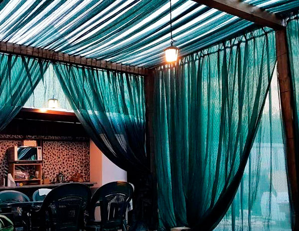 Сітка, що затіняє, дозволить сховатися вам від палючого сонця, комах, дрібного дощу, не створюючи при цьому парникового ефекту.